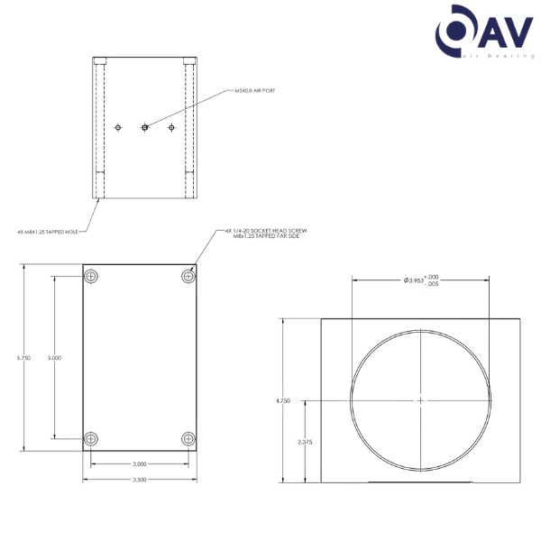 Aluminum mounting blocks for air bushings are available in both imperial and metric sizes.